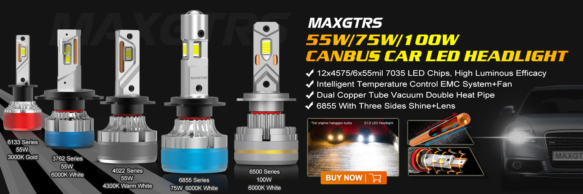 View full detailsVoltage: DC 9-32V(fit 12V,24V vehicles)Power: 30WLed chip: High power CSP 3570 led chipLumens: 20000lmColor Temperature: 3000K Gold, 6000K WhiteMat...