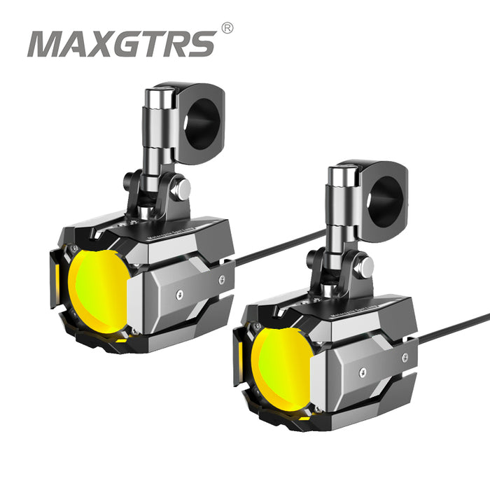 2× Motorcycle Bi LED Projector Lens HD Fog Driving Lamp 120W 30000LM Dual Colors Auxiliary Light H/L Beam Strobeflash Devil Eyes DRL